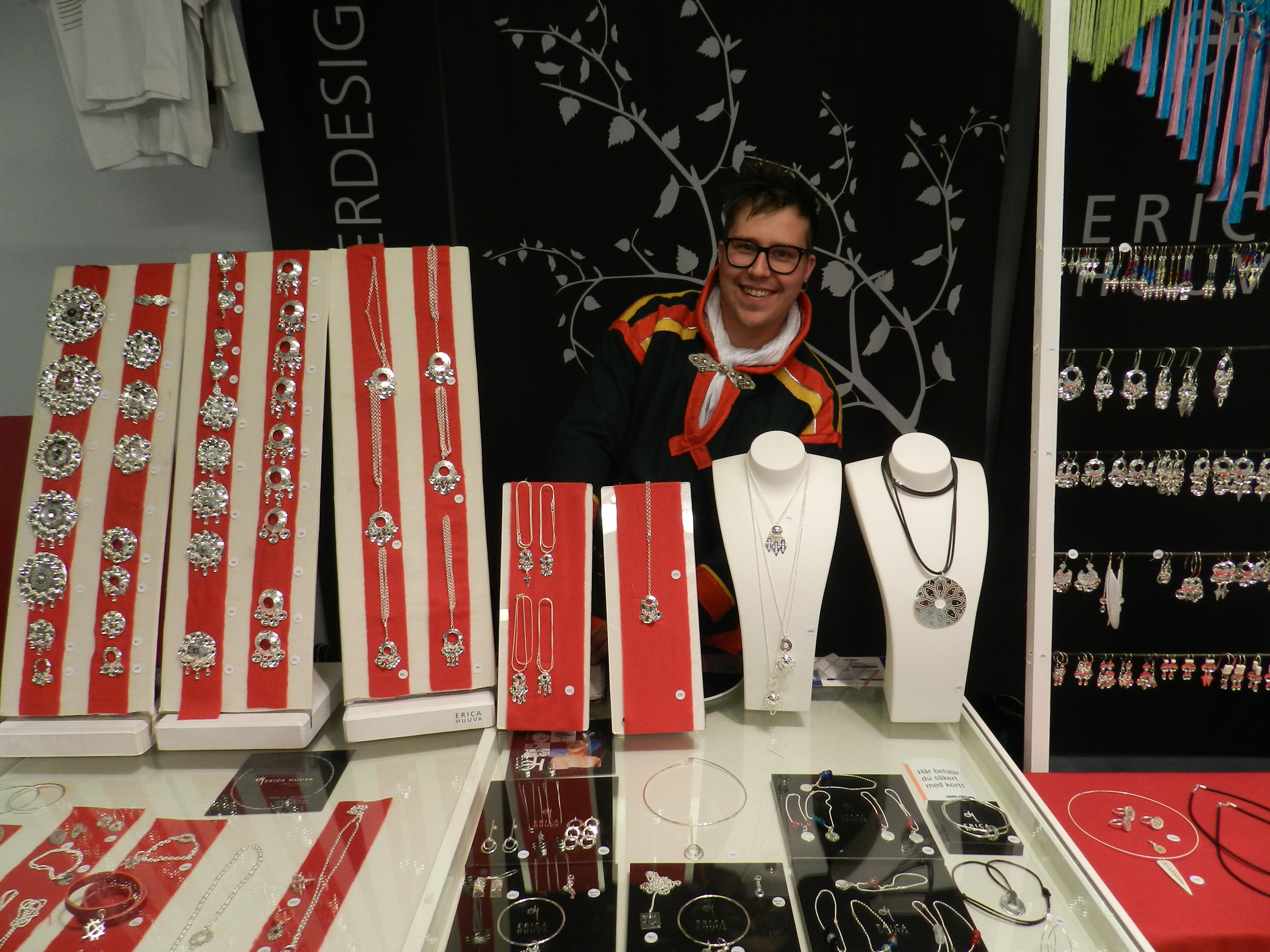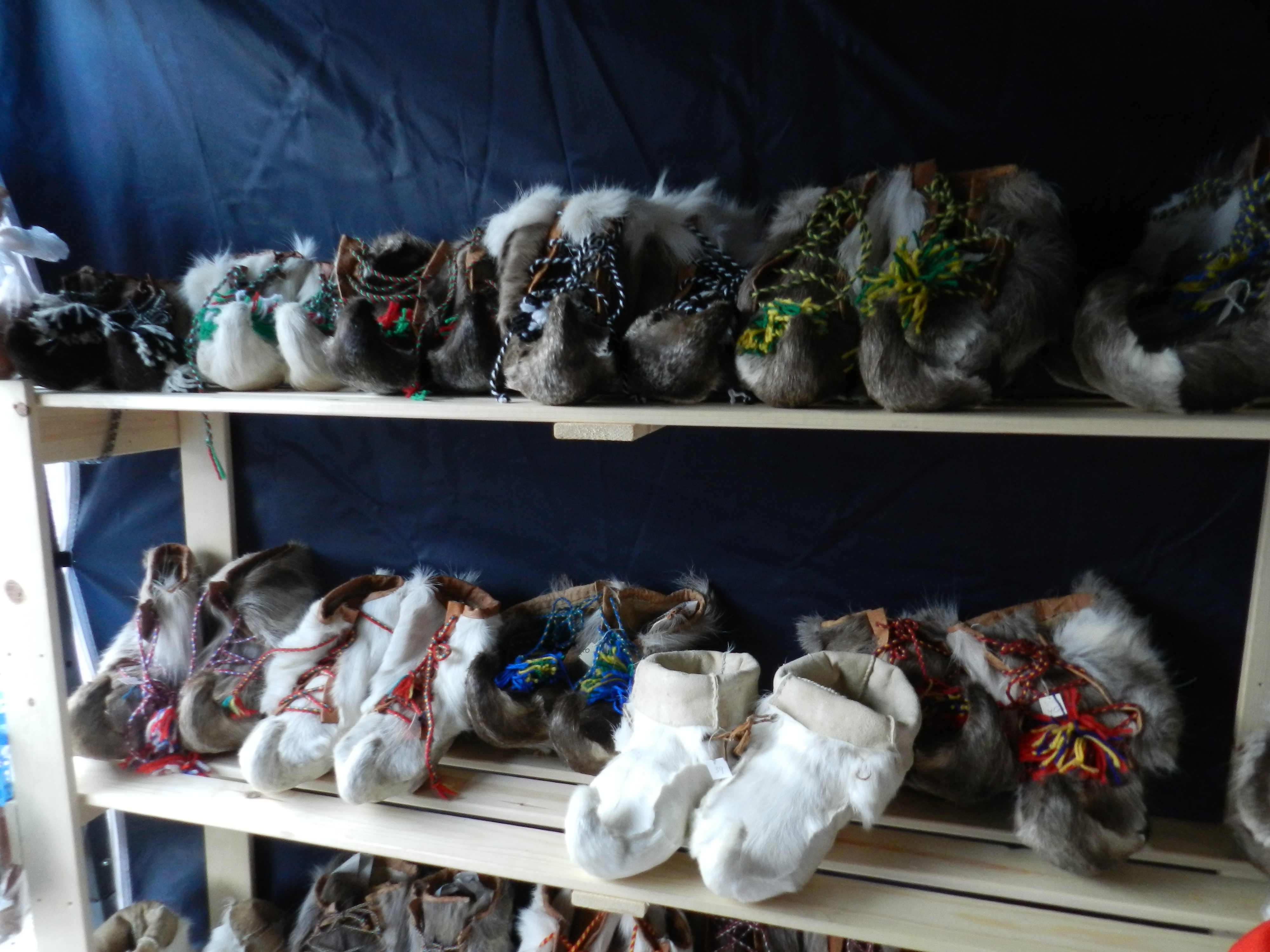I found very interesting at the conference discussions of ‘Sami identity’, and the opportunity to speak with Sami youth. As tourists are making up a larger and larger portion of visitors, the goods that they buy come into question. As many Sami handicrafts, traditional and modern, are for sale, one wonders what is appropriate to buy and wear? The gakti (main tunic-like clothing, covering chest and arms), hats, shoes, jewelry…? Opinions of course differ, as one cannot expect an identical Sami voice. The sale of handicraft, or duodji, has high economic value, and makes a livelihood for many. The Sami Education Center had exhibition and stall space for current and prior students. One stall sold woolen felt by the meter for those wishing to sew their own designs, others ranged from traditional products of leather, wood, and reindeer bone, to modern interpretations of the pea-coat and sport jacket; examples of global influence and style preference. A sense of pride in tradition (and evolving tradition) and craftsmanship was certainly felt from the vendors.