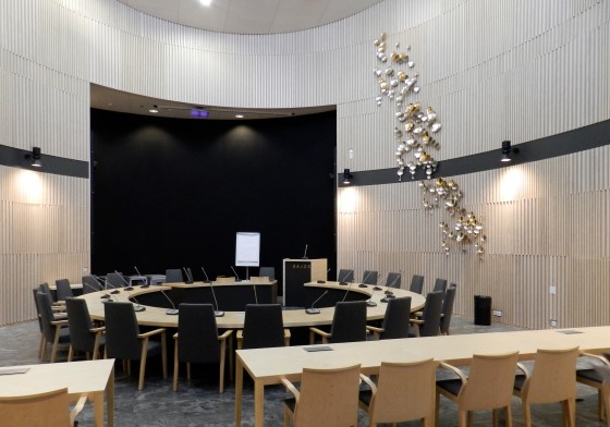 Sajos was designed with much more in mind than housing the Finnish Sámi Parliament. The growth of population and infrastructure and the creation of jobs for skilled workers are part master plan of development for Inari. A master plan is common for growing cities and villages. It aims to determine specific goals (for social development as well as physical buildings) for the particular location, and make gradual steps towards those ultimate goals with each single development project. The Sajos building was not constructed for the single purpose of housing the Sámi Parliament, and it is then no surprise it is named Sajos (meaning a site on which people camp for a longer time) rather than Sámediggi (Sámi Parliament). As the Sámi cultural centre the building houses facilities for the Sámi Education Institute, the Sámi Library, the Sámi Archive, Lapland Regional State Administrative Agency, Finland’s Sámi Duodji Shop, SámiSoster ry, the Galla restaurant, conference and event services, all in addition to the Sámi Parliament.