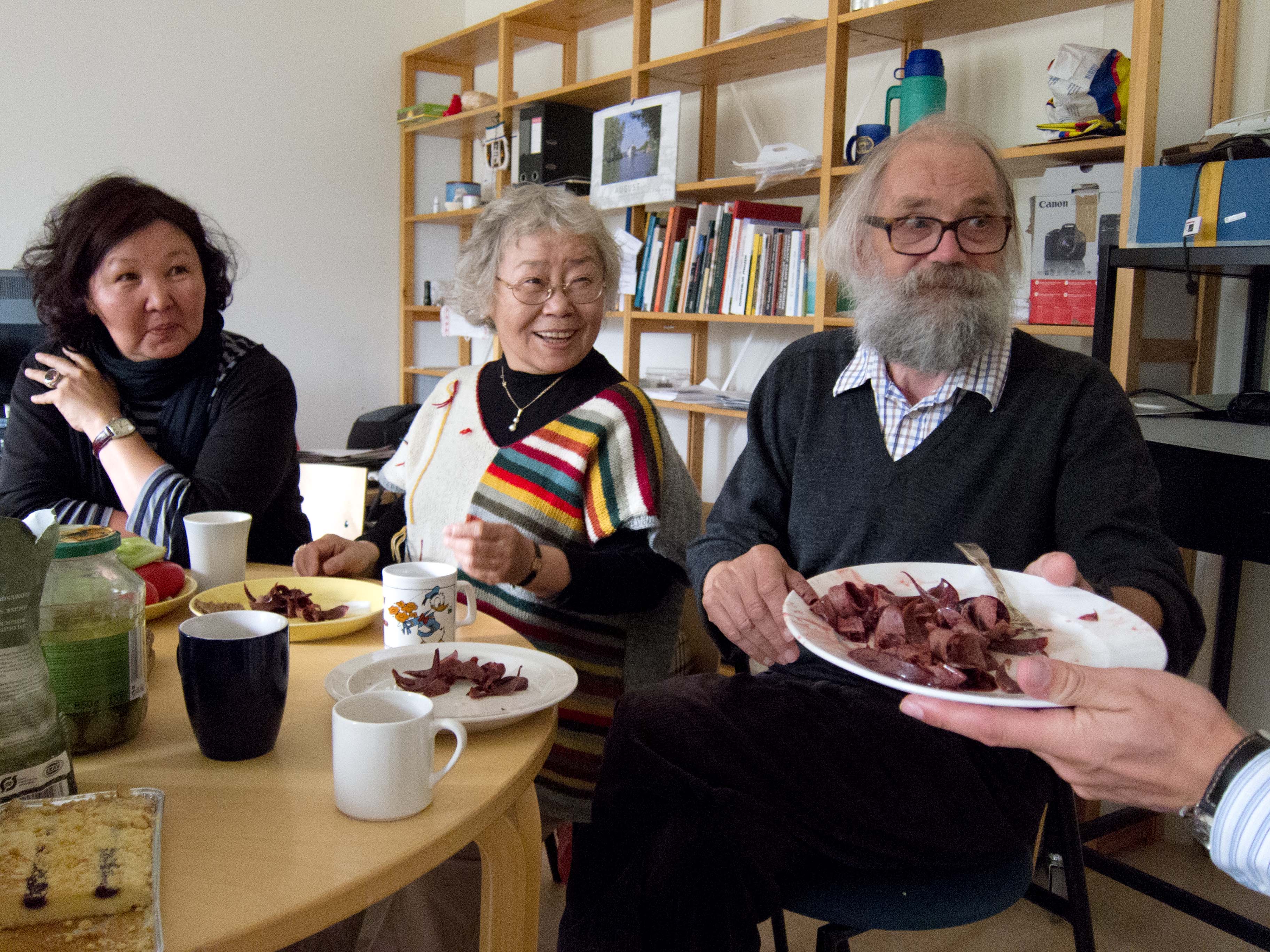 During our discussion we had a very tasty degustation of raw reindeer liver (in the Nenets way), which Florian Stammler bought from a Sámi reindeer herder from Enontekiö here in Northern Finland – so thanks to him also!