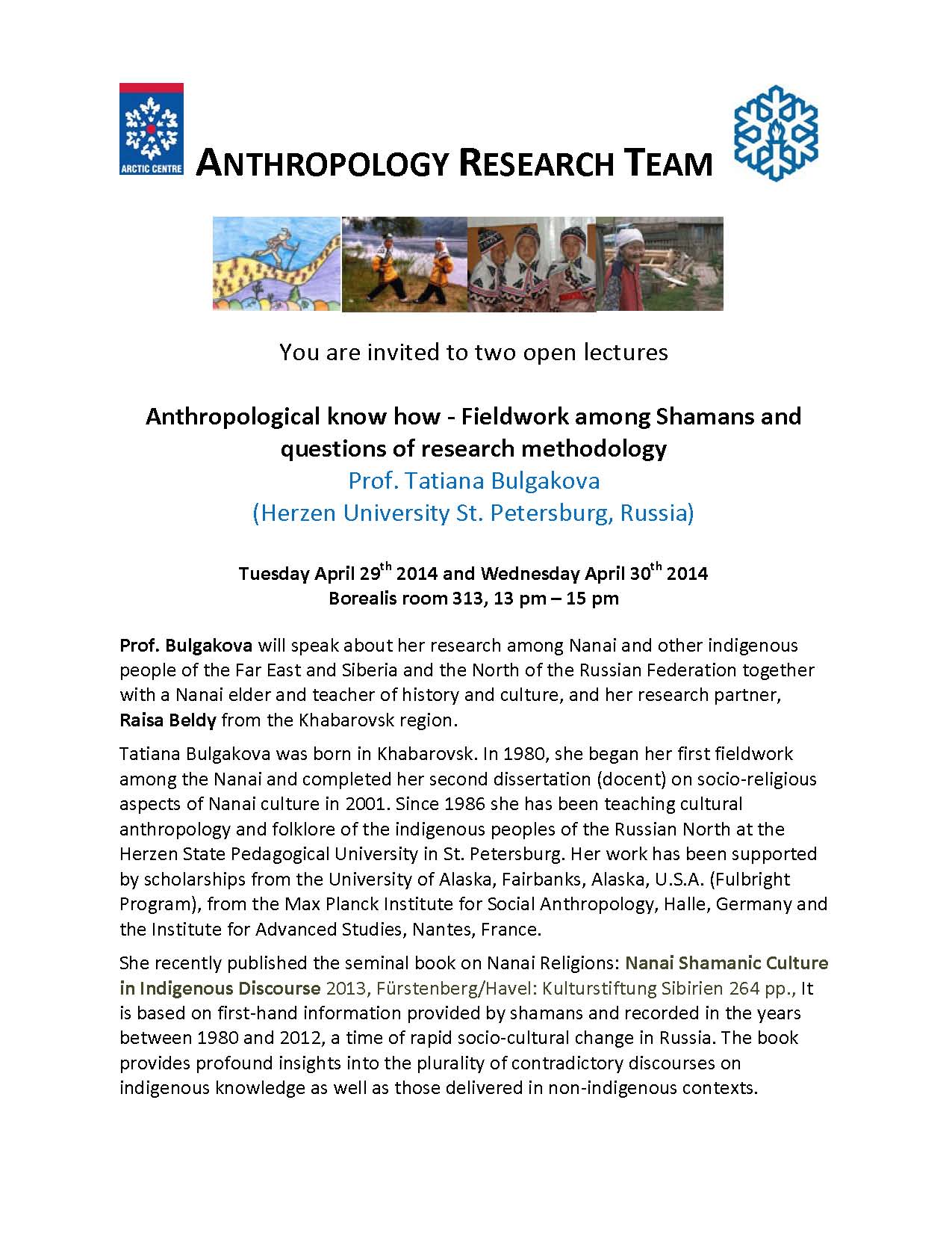 2) Bulgakova gave some alternative interpretations of the material that came out of early fieldwork done by her jointly with Juha Pentikainen, the famous Finnish religious studies scholar. Bulgakova had been together with him to the field, but then followed this up with many more frequent returns and deeper involvement in the life of the Nanai people. This was a prime example to invite us thinking about distinguishing more clearly between a) what we see happening in the field, b) how do our fieldwork partners who live there interpret what’s happening, and c) how do we as anthropologists interpret that. In all three of these points, Bulgakova’s view was different from Pentikainen’s. This reminds us once again that anthropology is not about presenting facts and “truth”. Nobody will ever know what “really” happened in the field, but we will find out from writings and lectures what the anthropologists thought happened there.