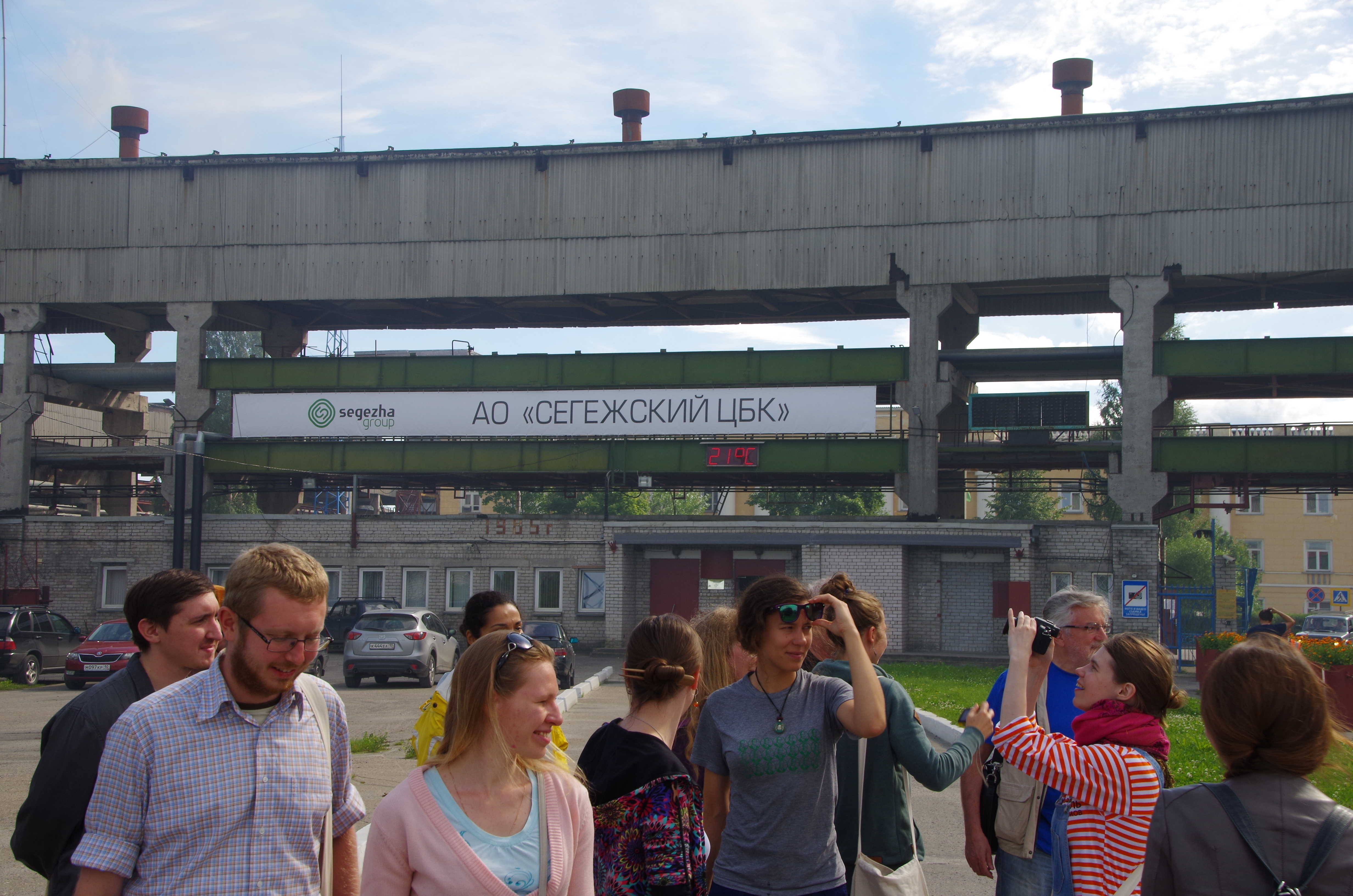 One of our next stops in our diverse programme was Segezha, a typical northern mono-industrial town. From outside, the dominating building of the factory reminds the exploded reactor of Chernobyl, but in fact it is a functioning pulp and paper mill. As our guide Evgeniia Odessovna put it, the fumes protruding from every hole and crack in the walls of the building bear the smell of money!