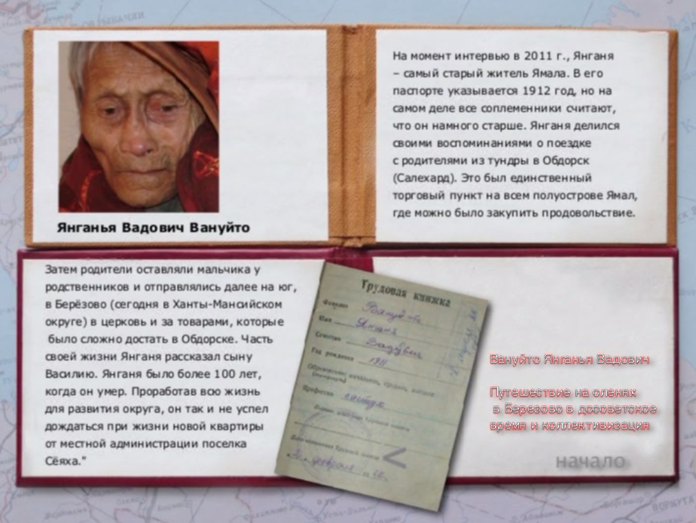 А вот почему мы сделали флешку, а не сайт? Сайт несомненно будет, но флешка была для нас первым приоритетом при реализации очень важной цели нашего проекта: вернуть собранные знания тем людям, которые нам их давали. С самого начала нашего четырехлетнего проекта по устной истории Арктики это было одной из главных целей. Флешка – это формат, который соединяет два требования: интерактивность и в то же время доступность из любого места, где есть компьютер, ноутбук или планшет. Такие устройства сейчас можно встретить даже в самых отдаленных оленеводческих бригадах, а вот с интернетом из-за отсутствия мобильной сети во многих местах труднее. Для представителей более молодых поколений это будет познавательный, а иногда даже забавный способ узнать о жизнях своих предков. Многие нам признавались, что им истории бабушек и дедушек интересны, но в суете повседневной жизни стариков просто некогда расспрашивать. А если свободное время все-таки появляется, то хочется посмотреть «видик» или полазать в планшете. С флешкой можно будет соединить одно с другим. А для всех, включая старших, будет интересно сравнивать истории своего народа с человеческими судьбами в других арктических регионах, во многом, кстати, удивительно похожих.