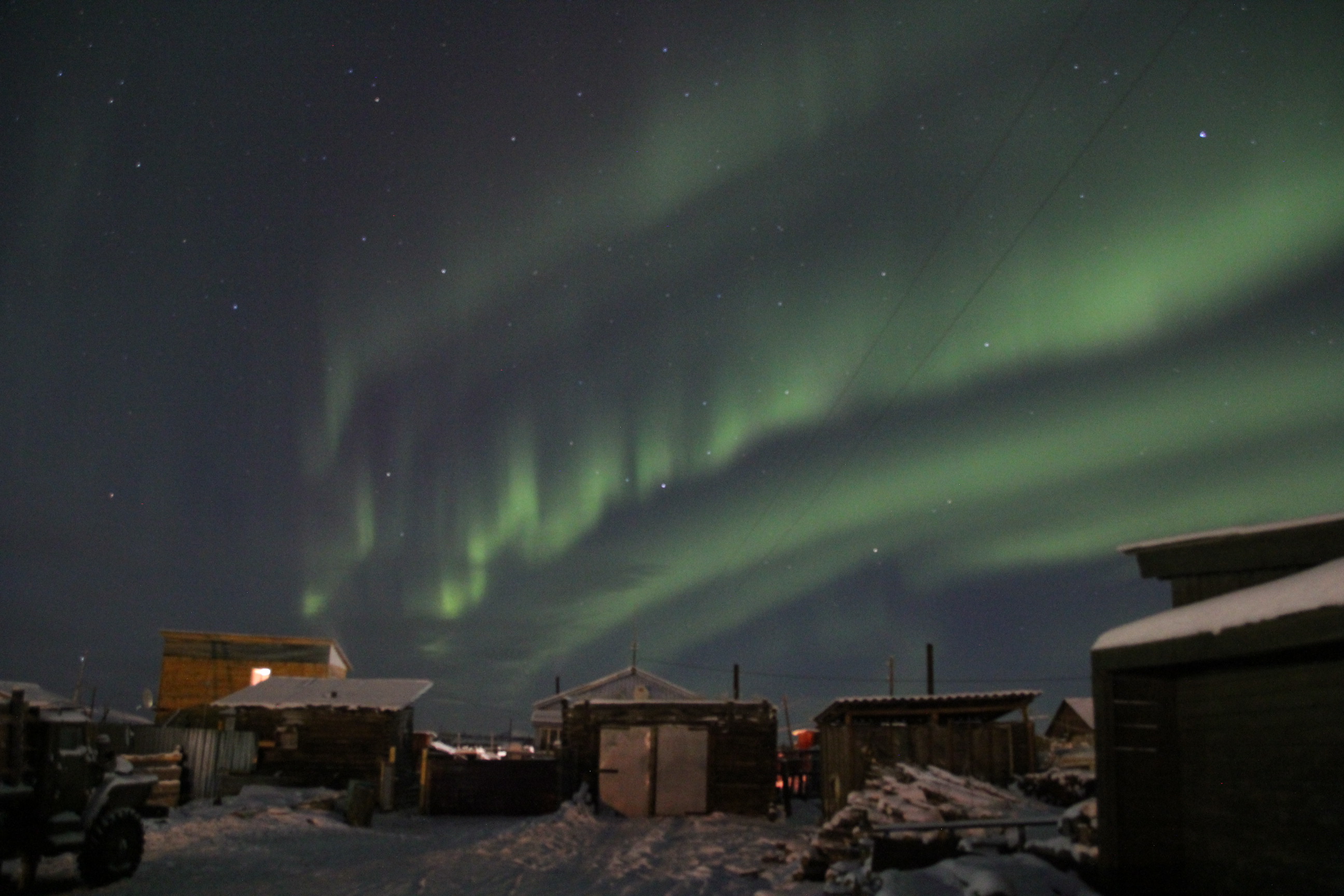 During fieldwork for our Arc Ark research project, I walk the street in Sakkyryr, the central village of the Eveno-Bytantay Ulus (District) of the Sakha Republic, Yakutia, East Siberia. I stop to take a picture of two beautiful white cows as they feed on something I can’t quite identify, out on the street at minus 20 degrees