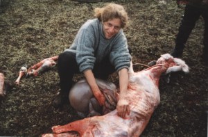 after a sleepless night, with high temperature, I still couldn’t hold back and had to participate in the slaughterHe was the guy with whom I swapped the sleeping bag for a yagushka at night. In the rain he was wearing a parka made of Darnit, the material which you use for road construction between the pebbles and the sand.