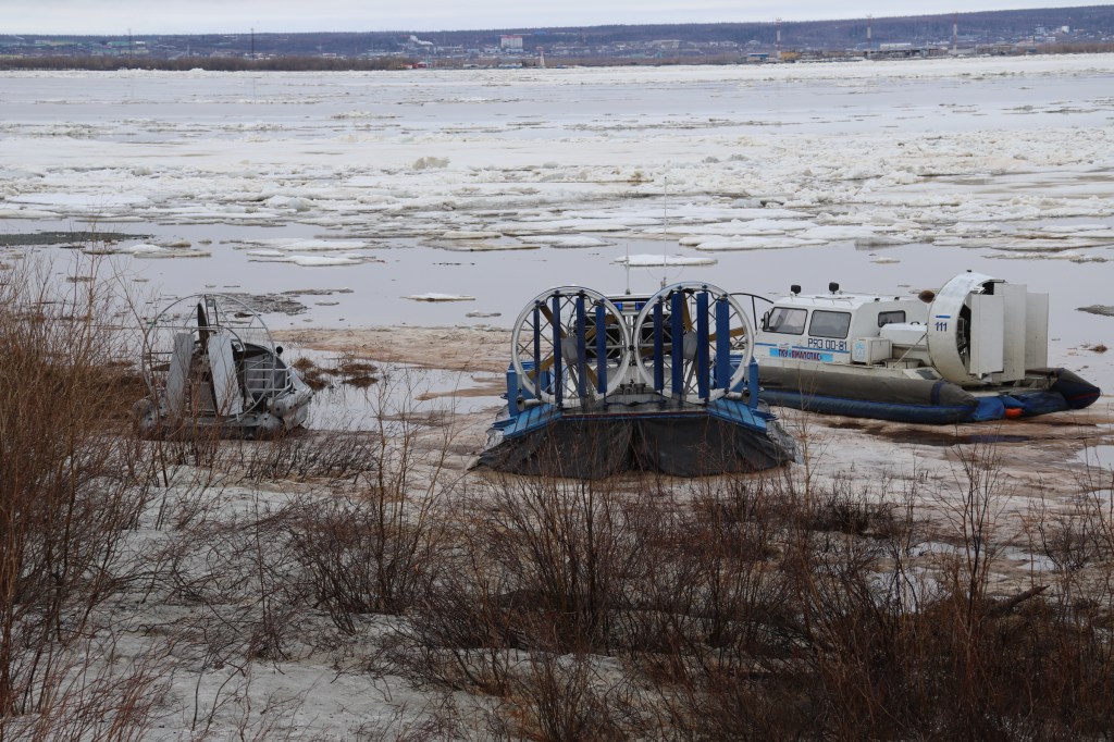 In Salekhard where I’m now the ice on the River Ob’ started moving already on 12 May, which is according to local news almost three weeks earlier than usual. By the way, even at times of COVID 19 and incessant reminders to stay at home, this is an event that still some people can’t miss. For the city-dwellers in Salekhard, it is the main signal for the start of the long-awaited warm season. It’s also the time when finally one can cross the river again by boat, and go by car over the neighbouring city of Labytnangi, where the trainline to Moscow ends, and thus all the cargo for West Yamal arrives. During the thin-ice time, one can cross the river only with Hovercraft (that’s a really cool vehicle by the way).