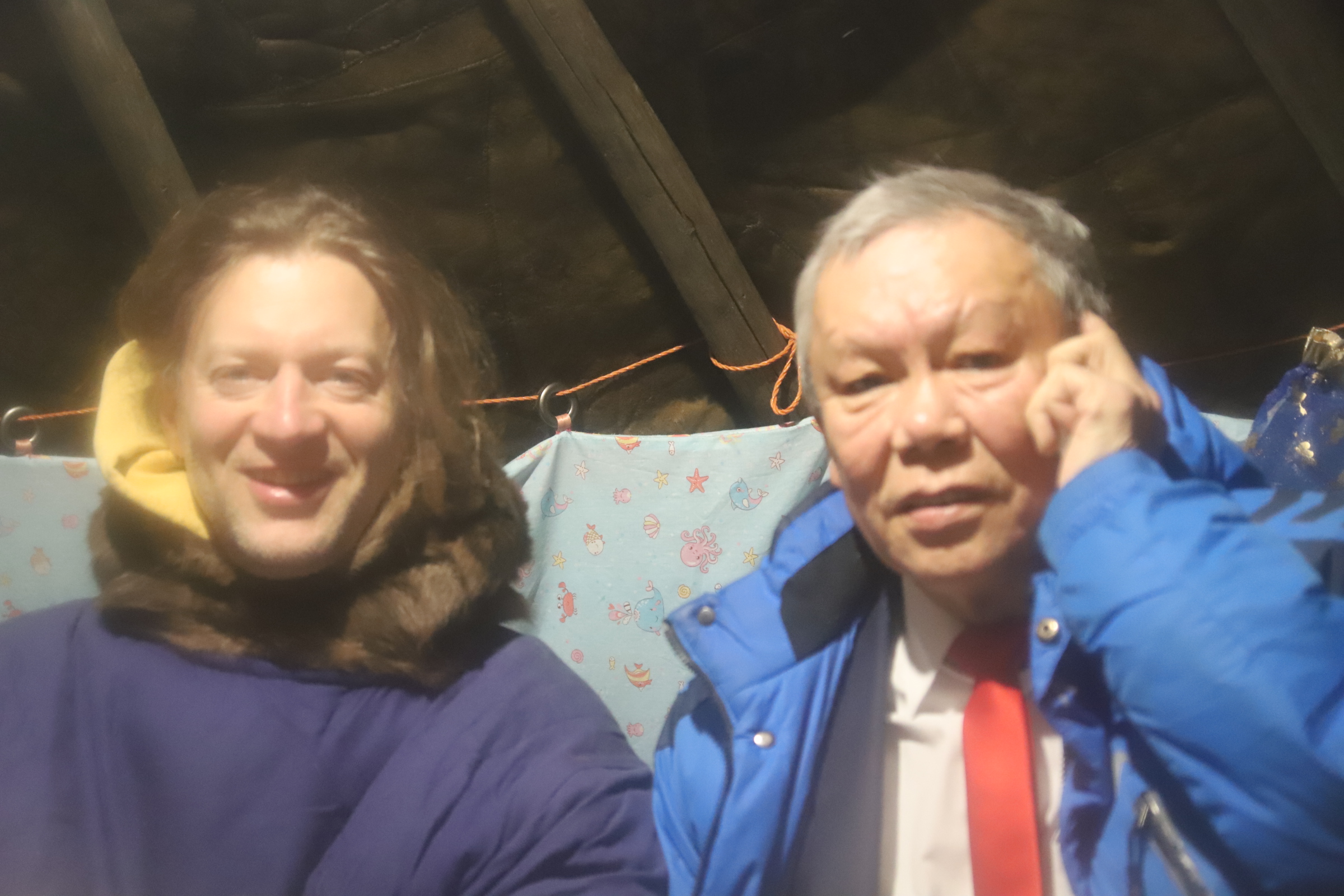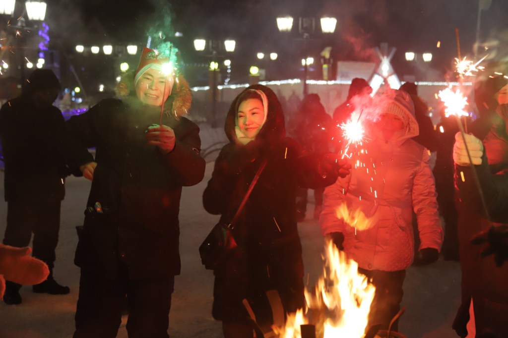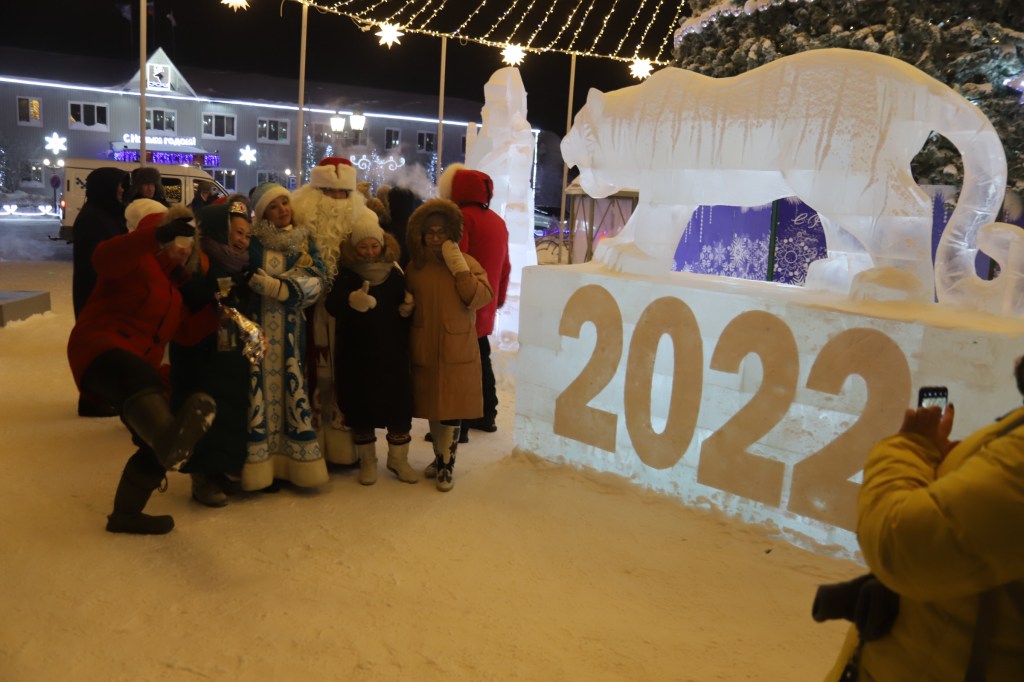 They organised a big new year’s party for the village people. They had a showmaster cheering people up to move and dance in the cold, around minus 30. They had Santa Claus, nice music, and special fire places for people to warm up