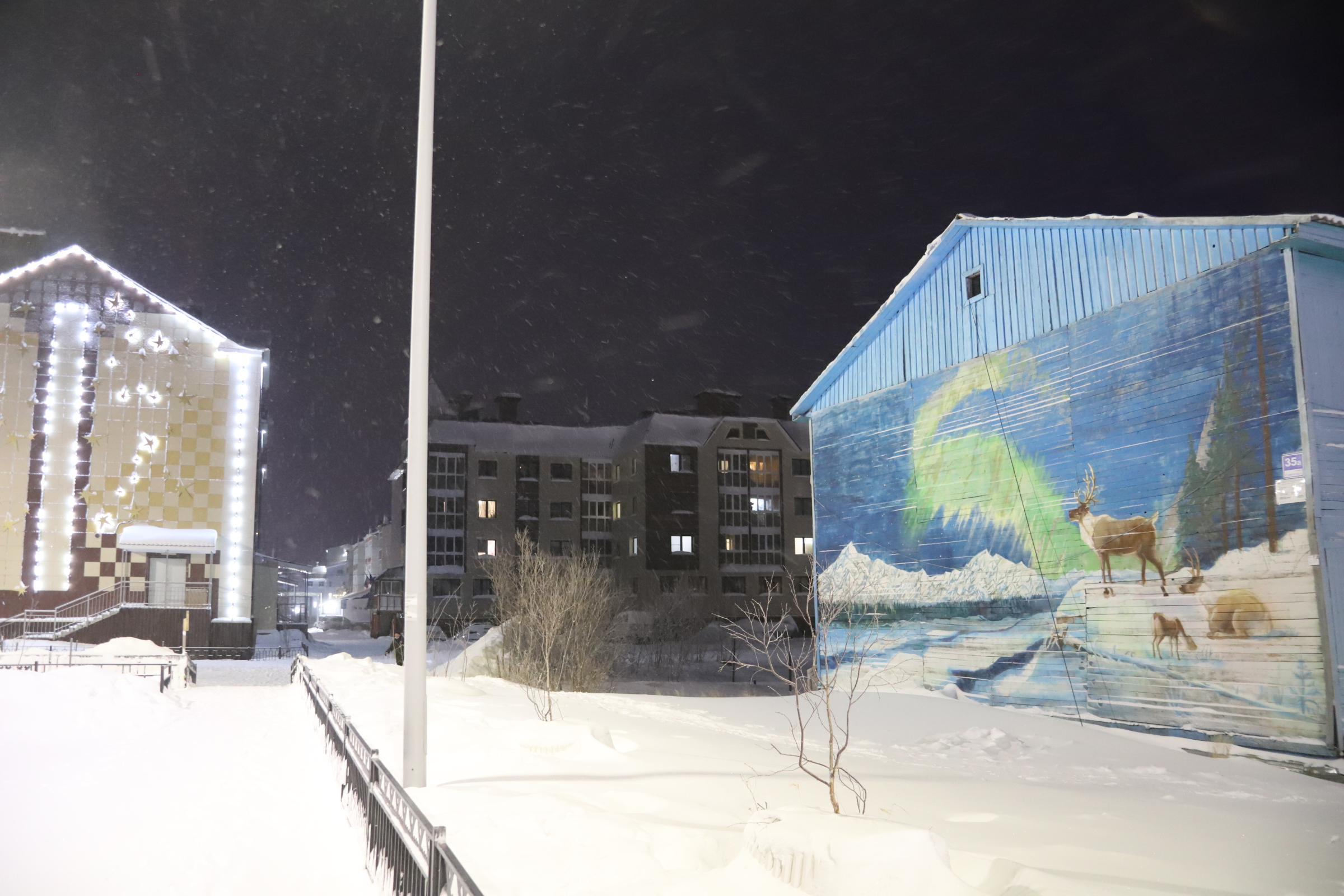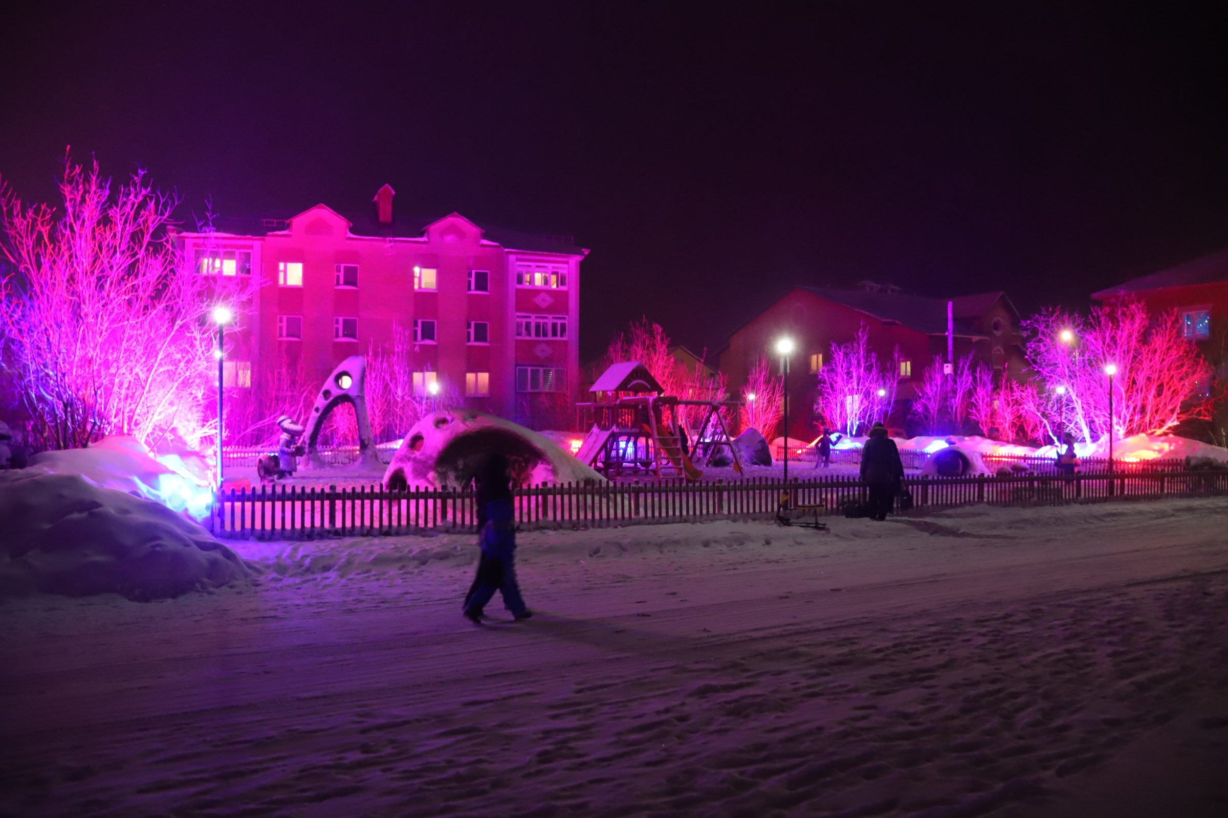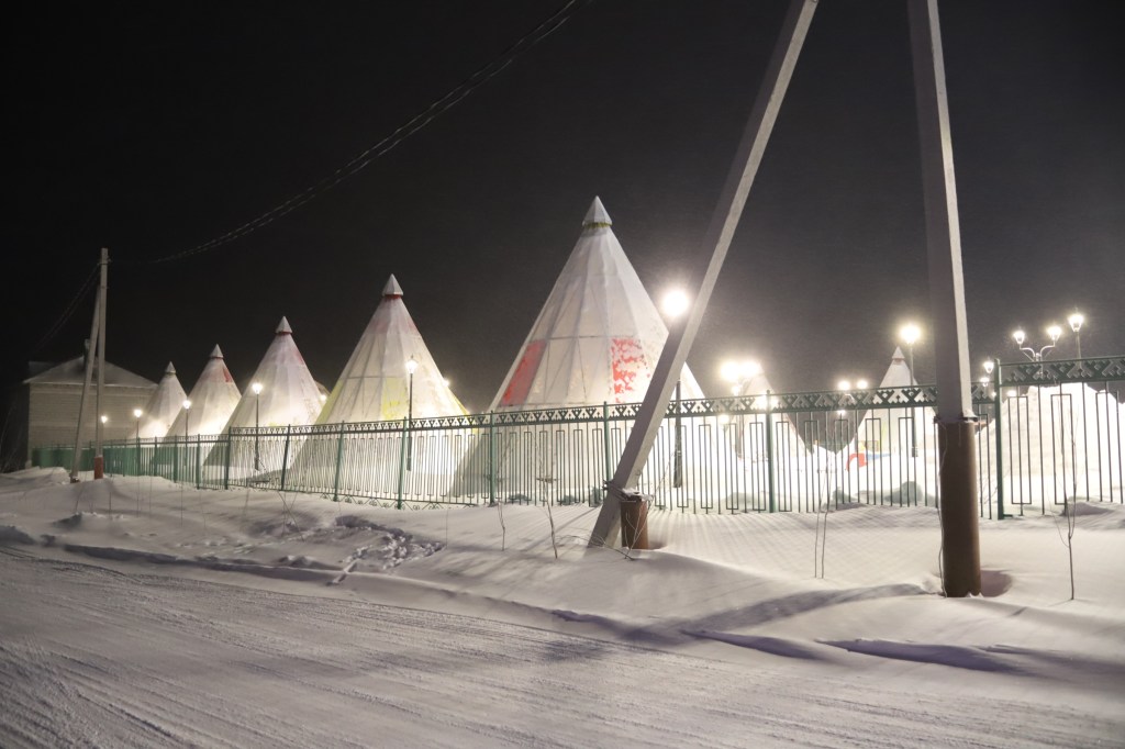What I found striking in Salekhard and also Yar-Sale was the way in which they use light to make the polar night a bit brighter. In Finnish Lapland most of this is done by individual houses around their yards.