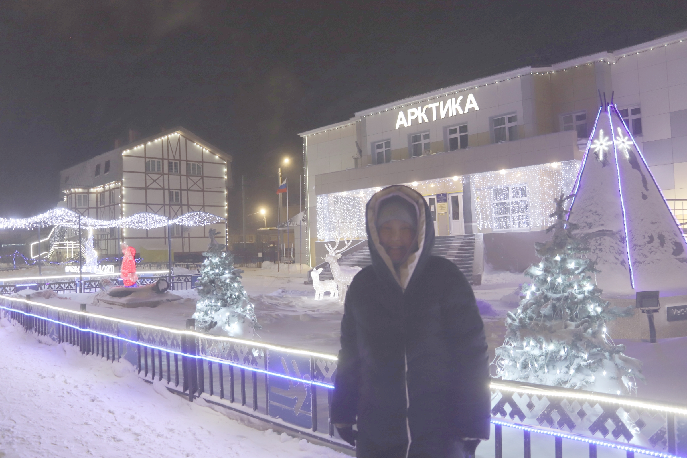 This is my first ever new years trip to the Russian Arctic. Flying from Finland to Yamal, one of the first visible impressions is the extensive use of light here in the Russian North beyond the Arctic Circle. Immediately after arrival friends take me proudly to the city-park in Salekhard. It’s a sea of light installations, with lit sculptures of Arctic animals, such as moose, polar fox, reindeer.