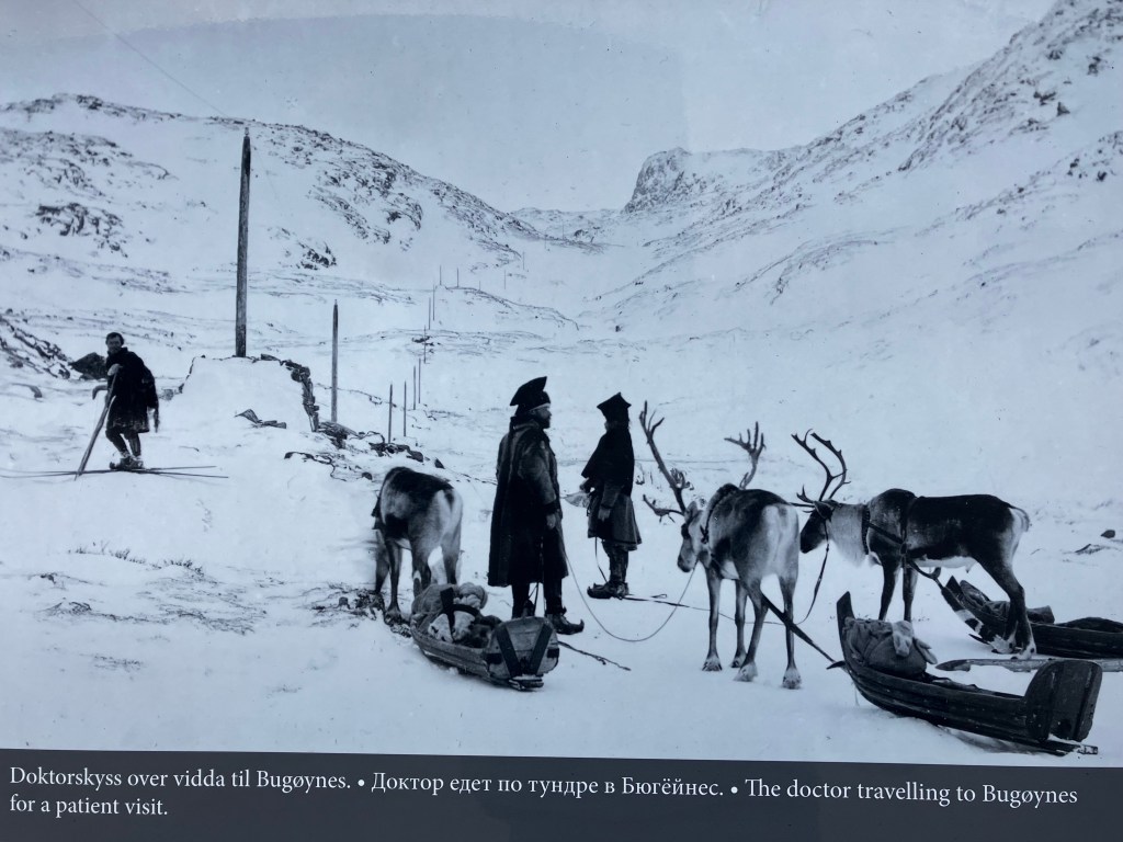 When Kirkenes was only a couple of wooden houses, before the mine opened, obviously travelling was much harder. The nice photo exhibit on the main square in Kirkenes has some nice images about that: the doctor in the early 20th century used reindeer as a regular transport to get to the neighbouring settlements, as on the picture above on his way to Bugøynes .