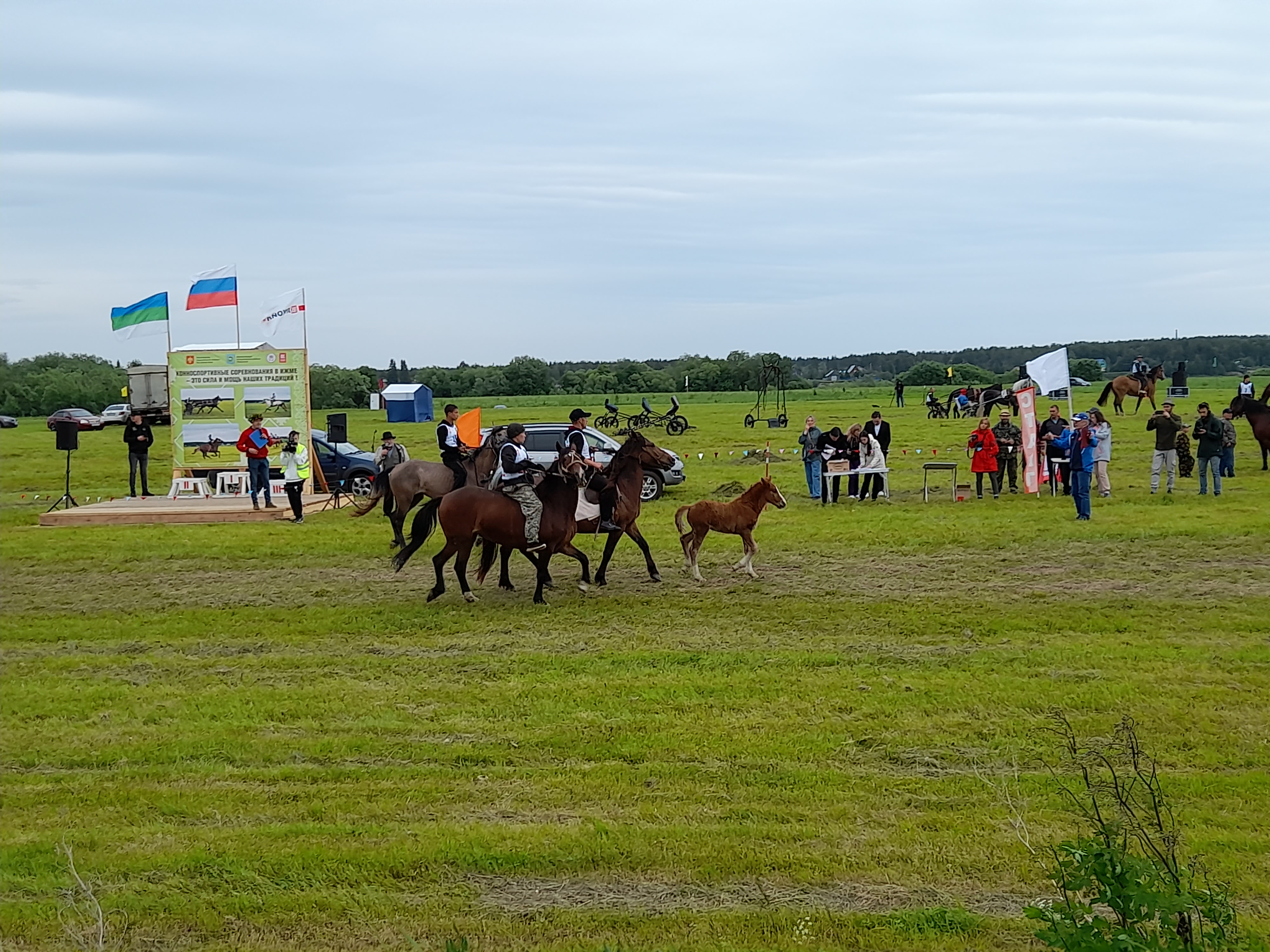 In the late afternoon, the horse races (known as gonki or skachki) start. The competition was born out of the tradition to drive a herd of horses through the meadows before the celebration to make the ground hard enough, for the people to gather. Horses, that take part in the competition are not professional racing horses. they are typically animals used for agricultural work and are only lightly trained for the race. Therefore, they may not always be eager to run or to stand at the starting line.
