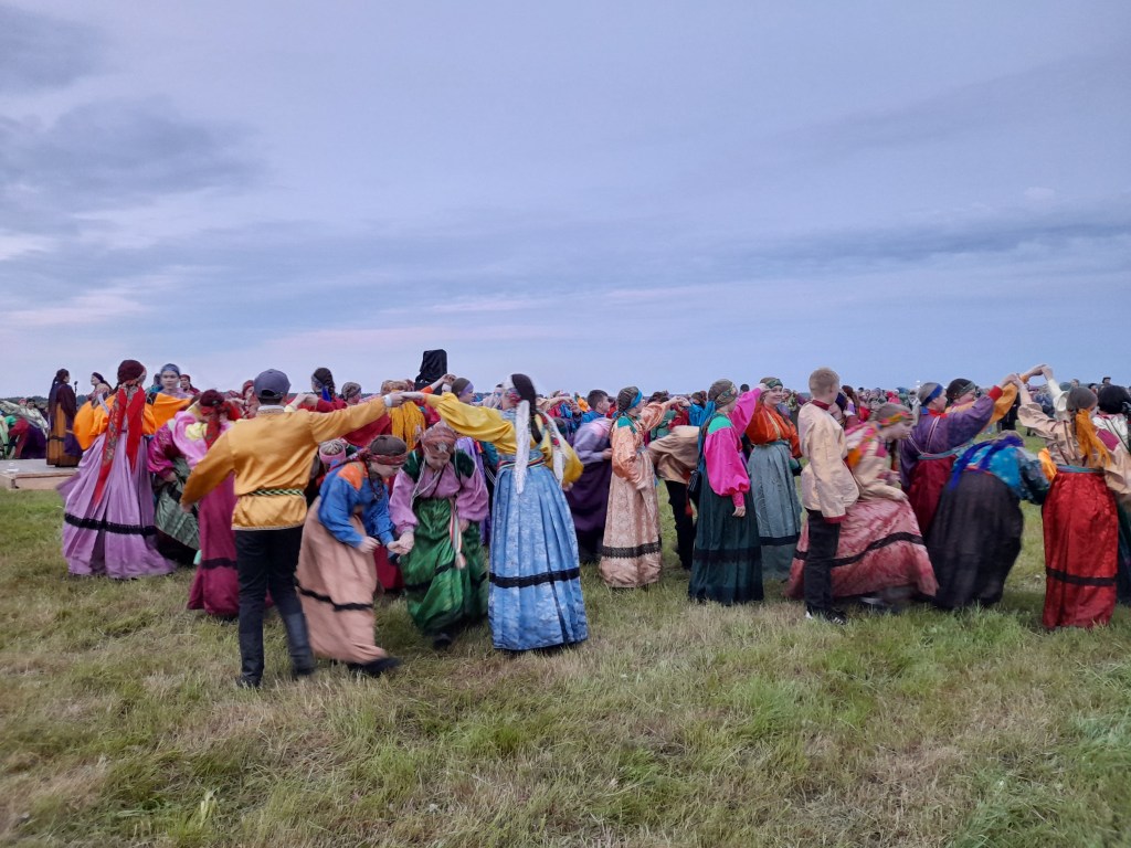 The history of Izhma Komi ‘Lud’ festival dates back to pagan times. It has been held on the last Saturday of June, just before the start of the hay making season, reflecting spring-to- summer transition. That is the time when, as it was believed, nature reaches its peak, the herbs absorb all of the juice, have miraculous powers, and the water in the river becomes healing. In the earlier days, Izhma Komi would gather in the meadows along the Izhma river and light up bonfires. The celebration lasted from the evening until the sunrise, when the border between the human and spiritual worlds is open.